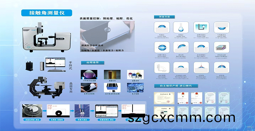 接(jie)觸(chu)角測(ce)量(liang)儀 ??????水滴角測(ce)量(liang)儀(yi) ??????剝離(li)力(li)試驗(yàn)機(jī)